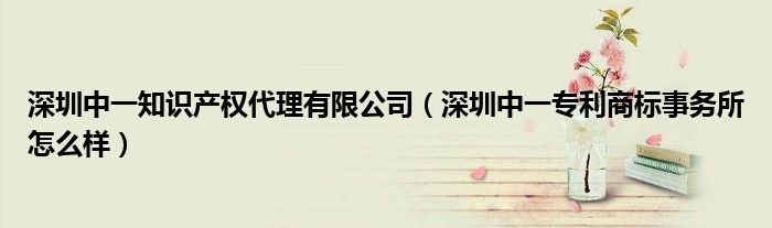深圳中一知识产权代理有限公司(深圳中一专利商标事务所怎么样)