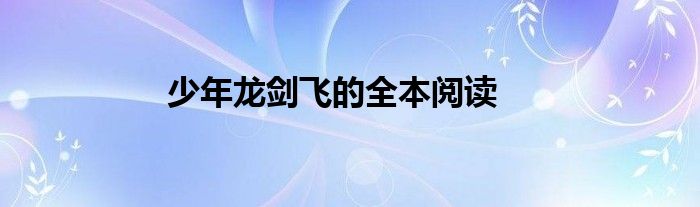关于少年龙剑飞的全本阅读这个很多人还不知道,今天菲菲来为大家解答以上的问题,现在让我们一起来看看吧!