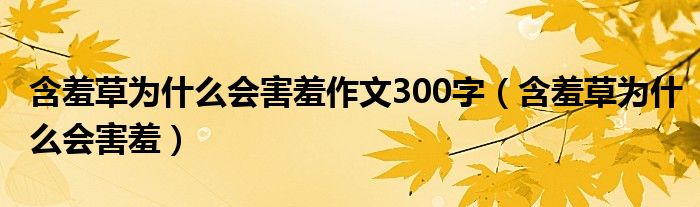 关于含羞草为什么会害羞作文300字,含羞草为什么会害羞这个很多人还不知道,今天菲菲来为大家解答以上的问题,现在让我们一起来看看吧!