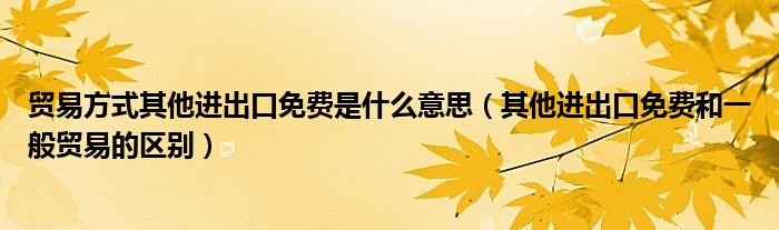 关于贸易方式其他进出口免费是什么意思,其他进出口免费和一般贸易的区别这个很多人还不知道,今天菲菲来为大家解答以上的问题,现在让我们一起来看看吧!