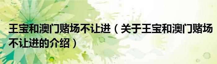 大家好,小都来为大家解答以上的问题。王宝和澳门赌场不让进,关于王宝和澳门赌场不让进的介绍很多人还不知道,现在让我们一起来看看吧!