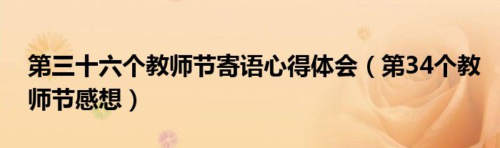 关于第三十六个教师节寄语心得体会,第34个教师节感想这个很多人还不知道,今天菲菲来为大家解答以上的问题,现在让我们一起来看看吧!