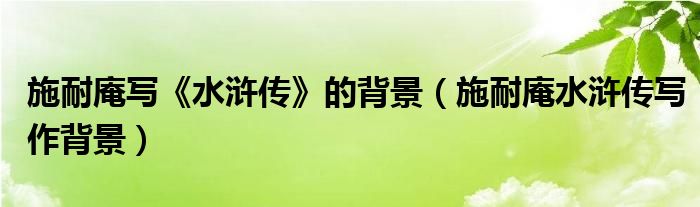 关于施耐庵写《水浒传》的背景,施耐庵水浒传写作背景这个很多人还不知道,今天菲菲来为大家解答以上的问题,现在让我们一起来看看吧!
