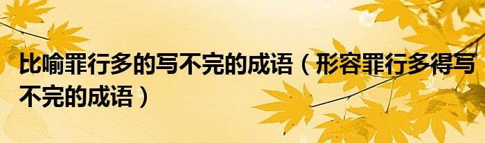 大家好,小晋来为大家解答以下问题,关于比喻罪行多的写不完的成语,形容罪行多得写不完的成语很多人还不知道,今天让我们一起来看看吧!