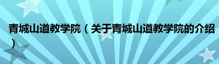 1、青城山道教学院是经国家宗教局正式批准设立的培养道教人才的高等宗教院校,学校占地32亩,学制3年,是西南地区唯一一所专门培养道教界人才的专科类宗教院校。