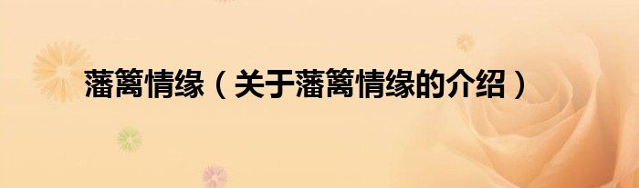 藩篱情缘(关于藩篱情缘的介绍)