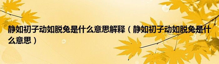 大家好,小晋来为大家解答以下问题,关于静如初子动如脱兔是什么意思解释,静如初子动如脱兔是什么意思很多人还不知道,今天让我们一起来看看吧!