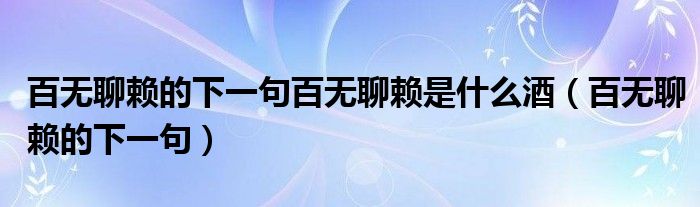 大家好,小晋来为大家解答以下问题,关于百无聊赖的下一句百无聊赖是什么酒,百无聊赖的下一句很多人还不知道,今天让我们一起来看看吧!
