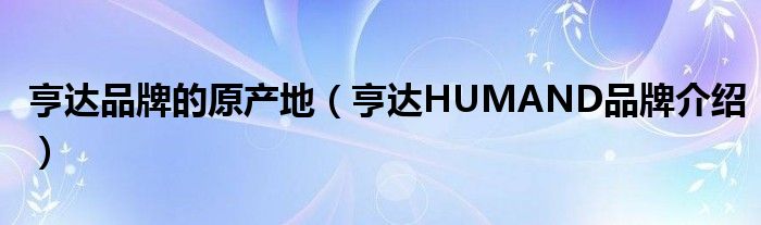 大家好,小源来为大家解答以上问题。亨达品牌的原产地,亨达HUMAND品牌介绍很多人还不知道,现在让我们一起来看看吧!