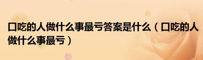 口吃的人做什么事最亏答案是什么,口吃的人做什么事最亏这个很多人还不知道,小飞来为大家解答以上的问题。现在让我们一起来看看吧!