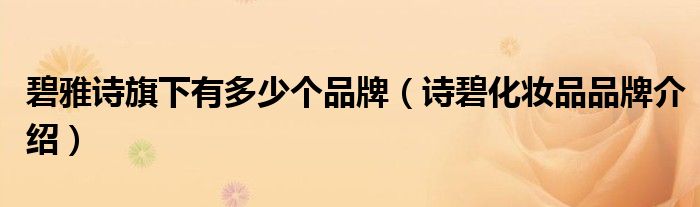 大家好,小源来为大家解答以上问题。碧雅诗旗下有多少个品牌,诗碧化妆品品牌介绍很多人还不知道,现在让我们一起来看看吧!