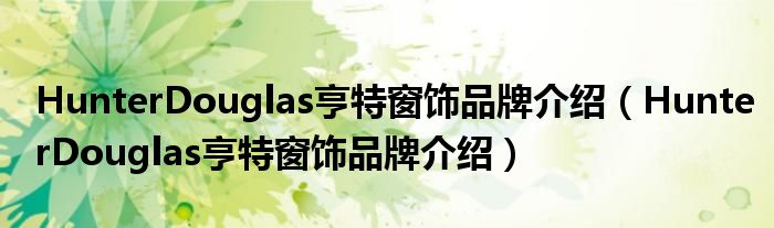 大家好,小源来为大家解答以上问题。HunterDouglas亨特窗饰品牌介绍,HunterDouglas亨特窗饰品牌介绍很多人还不知道,现在让我们一起来看看吧!