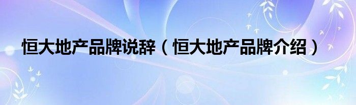 大家好,小源来为大家解答以上问题。恒大地产品牌说辞,恒大地产品牌介绍很多人还不知道,现在让我们一起来看看吧!