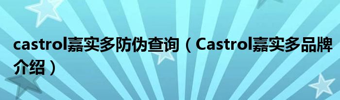 大家好,小源来为大家解答以上问题。castrol嘉实多防伪查询,Castrol嘉实多品牌介绍很多人还不知道,现在让我们一起来看看吧!