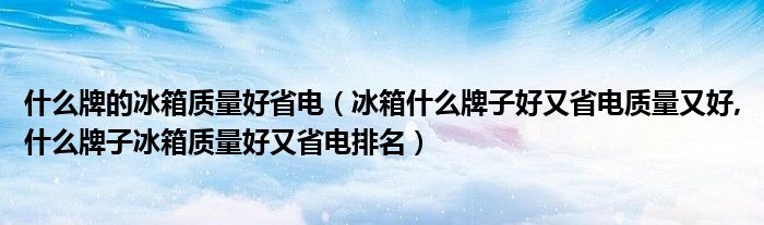 大家好,小常来为大家解答以上问题。什么牌的冰箱质量好省电,冰箱什么牌子好又省电质量又好,什么牌子冰箱质量好又省电排名很多人还不知道,现在让我们一起来看看吧!