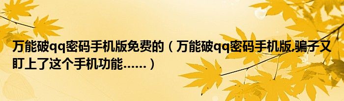 万能破qq密码手机版免费的(万能破qq密码手机版,骗子又盯上了这个手机功能……)