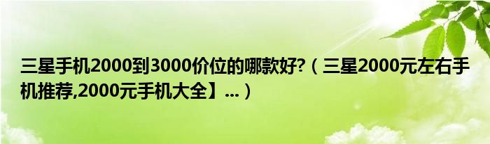 大家好,小常来为大家解答以上问题。三星手机2000到3000价位的哪款好?,三星2000元左右手机推荐,2000元手机大全】...很多人还不知道,现在让我们一起来看看吧!