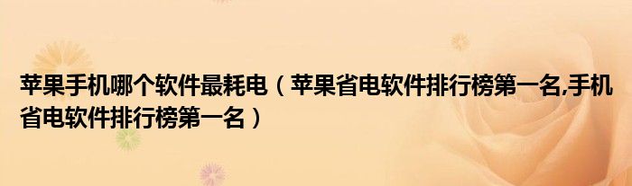 大家好,小常来为大家解答以上问题。苹果手机哪个软件最耗电,苹果省电软件排行榜第一名,手机省电软件排行榜第一名很多人还不知道,现在让我们一起来看看吧!
