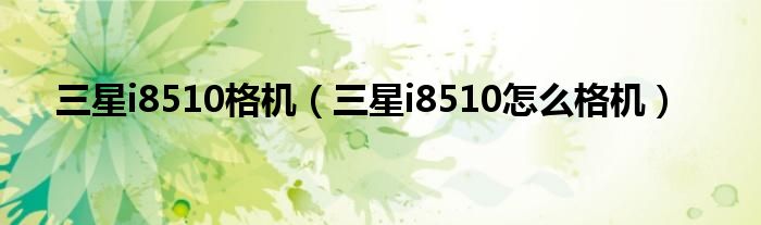 大家好,小常来为大家解答以上问题。三星i8510格机,三星i8510怎么格机很多人还不知道,现在让我们一起来看看吧!