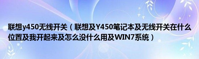 以前本人也遇到过这样的情况,本人也用的联想y450<br/>首先你先看看你的驱动安装了没有,也就是无线网的驱动,最好能去联想的官网下载,当然,这个是与系统有关的,看你装的xp还是win7后再下载,我这里给你个win7的 <a href="http://wenwen.soso.com/z/urlalertpage.e?sp=shttp%3a%2f%2fsupport1.lenovo.com.cn%2flenovo%2fwsi%2fmodules%2fdriverdetail.aspx%3fid%3d18383"target="_blank">http://support1.lenovo.com.cn/lenovo/wsi/modules/driverdetail.aspx?id=18383</a><br/>里面自己也可以找下xp的<br/>装好后,检查下你电脑的无线网开关是否打开,再就是你的电脑是否处于无线网络状态中。<br/>联想的无线wifi很好用的,你装好后会自动搜索附近的网络的,当然你也可以手动,之后就是连接的事情了