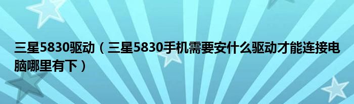1,三星5830手机需要安什么驱动才能连接电脑哪里有下 :不用下载驱动!如果是连接不上电脑的话 试试先连接USB 然后手机菜单》设置》应用程序》开发》usb调试我就是之前连不上,用这个方法找到的。