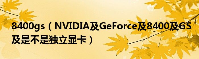 1,NVIDIA GeForce 8400 GS 是不是独立显卡 :是独立显卡。NVIDIA GeForce 8400 GS与NVIDIA GeForce 8400M GS的区别在于一个M字,不过这里的差别很大,除了性能就是用途了!因为带M字的是笔记本使用的显卡,M是Mobile的缩写。NVIDIA GeForce 8400 GS就是台式电脑的显卡。上一代7系列的移动显卡型号里使用的是Go来区分移动与桌面显卡。