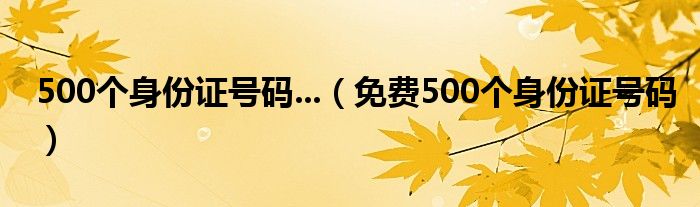大家好,小常来为大家解答以上问题。500个身份证号码...,免费500个身份证号码很多人还不知道,现在让我们一起来看看吧!