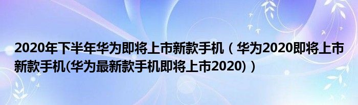 大家好,小常来为大家解答以上问题。2020年下半年华为即将上市新款手机,华为2020即将上市新款手机(华为最新款手机即将上市2020)很多人还不知道,现在让我们一起来看看吧!