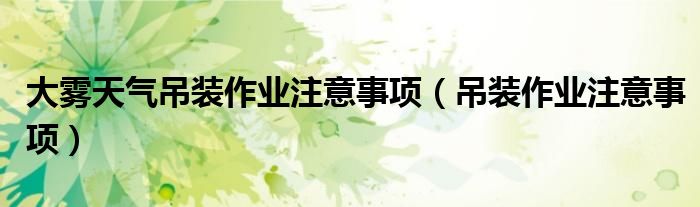 关于大雾天气吊装作业注意事项,吊装作业注意事项这个很多人还不知道,今天菲菲来为大家解答以上的问题,现在让我们一起来看看吧!