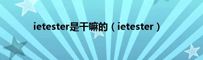 大家好,雨雨来为大家解答以上问题,ietester是干嘛的,ietester很多人还不知道,现在让我们一起来看看吧!