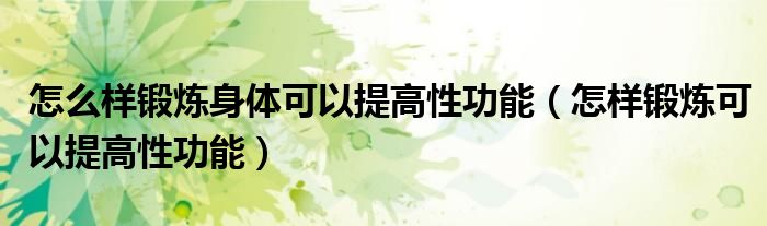 大家好,linda来为大家解答以上的问题。怎么样锻炼身体可以提高性功能,怎样锻炼可以提高性功能很多人还不知道,现在让我们一起来看看吧!