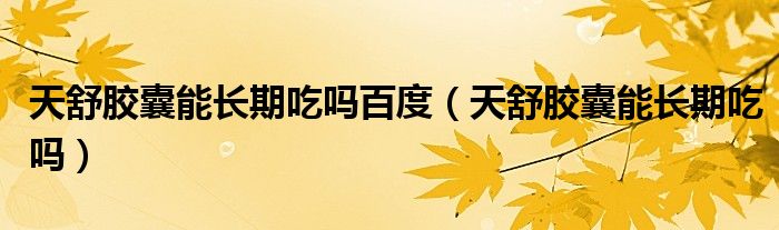 大家好,linda来为大家解答以上的问题。天舒胶囊能长期吃吗百度,天舒胶囊能长期吃吗很多人还不知道,现在让我们一起来看看吧!