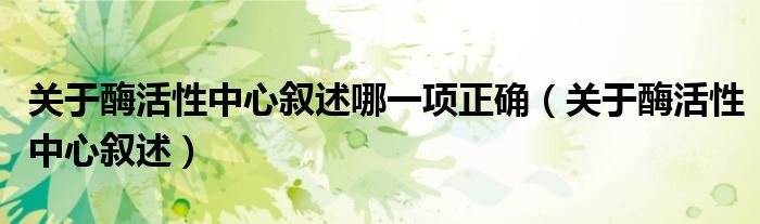 关于酶活性中心叙述哪一项正确(关于酶活性中心叙述)