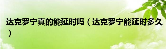 大家好,linda来为大家解答以上的问题。达克罗宁真的能延时吗,达克罗宁能延时多久很多人还不知道,现在让我们一起来看看吧!