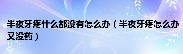 大家好,linda来为大家解答以上的问题。半夜牙疼什么都没有怎么办,半夜牙疼怎么办又没药很多人还不知道,现在让我们一起来看看吧!