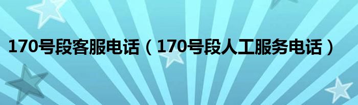 170号段客服电话(170号段人工服务电话)
