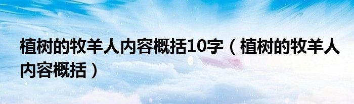 大家好,小晋来为大家解答以下问题,关于植树的牧羊人内容概括10字,植树的牧羊人内容概括很多人还不知道,今天让我们一起来看看吧!