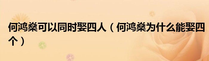 大家好,小晋来为大家解答以下问题,关于何鸿燊可以同时娶四人,何鸿燊为什么能娶四个很多人还不知道,今天让我们一起来看看吧!