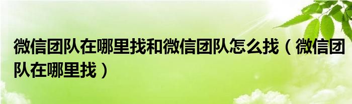 大家好,小晋来为大家解答以下问题,关于微信团队在哪里找和微信团队怎么找,微信团队在哪里找很多人还不知道,今天让我们一起来看看吧!