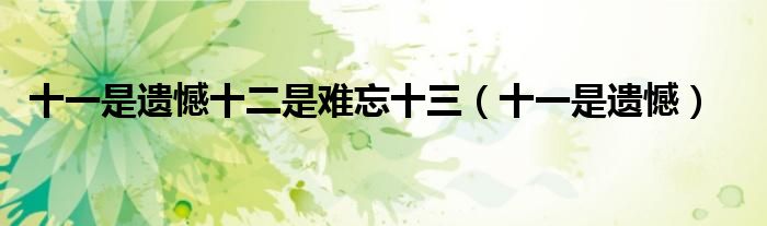 大家好,小晋来为大家解答以下问题,关于十一是遗憾十二是难忘十三,十一是遗憾很多人还不知道,今天让我们一起来看看吧!