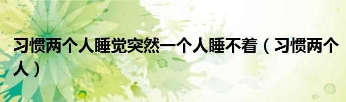 习惯两个人睡觉突然一个人睡不着,习惯两个人很多人还不知道,乐乐来为大家解答以上问题,现在让我们一起来看看吧!