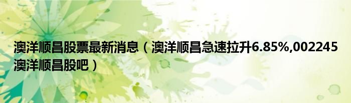 澳洋顺昌股票最新消息(澳洋顺昌急速拉升6.85%,002245澳洋顺昌股吧)