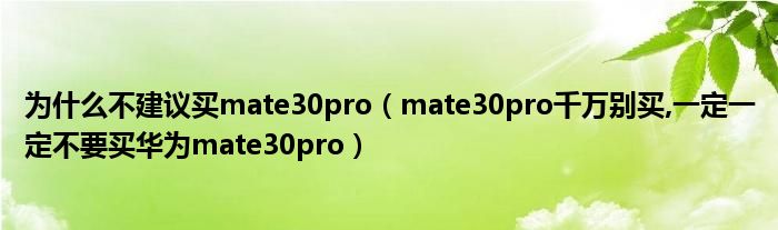 大家好,小常来为大家解答以上问题。为什么不建议买mate30pro,mate30pro千万别买,一定一定不要买华为mate30pro很多人还不知道,现在让我们一起来看看吧!