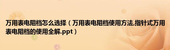 大家好,小常来为大家解答以上问题。万用表电阻档怎么选择,万用表电阻档使用方法,指针式万用表电阻档的使用全解.ppt很多人还不知道,现在让我们一起来看看吧!