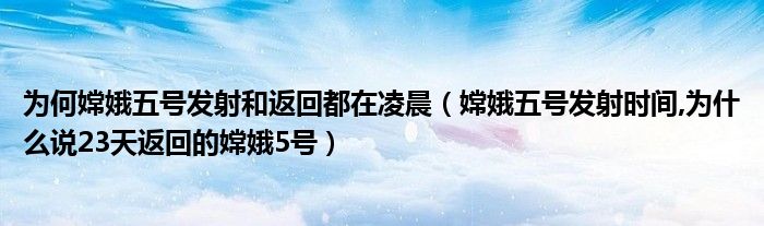 大家好,小常来为大家解答以上问题。为何嫦娥五号发射和返回都在凌晨,嫦娥五号发射时间,为什么说23天返回的嫦娥5号很多人还不知道,现在让我们一起来看看吧!