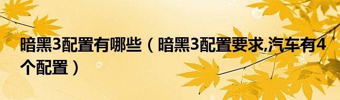 大家好,小常来为大家解答以上问题。暗黑3配置有哪些,暗黑3配置要求,汽车有4个配置很多人还不知道,现在让我们一起来看看吧!