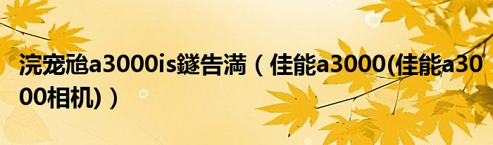 大家好,小常来为大家解答以上问题。浣宠兘a3000is鐩告満,佳能a3000(佳能a3000相机)很多人还不知道,现在让我们一起来看看吧!