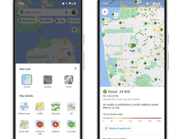 这些数据来自值得信赖的政府机构,包括美国的环境保护署(EPA)。地图还显示来自PurpleAir的空气质量信息,这是一种低成本传感器网络,可以为您提供超本地的条件视图。要将此空气质量图层添加到您的地图,您需要点击手机屏幕右上角的按钮,然后在地图详细信息下选择空气质量。来自PurpleAir的信息也可以在Nest显示器和扬声器上找到。