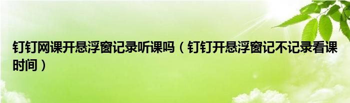 钉钉网课开悬浮窗记录听课吗(钉钉开悬浮窗记不记录看课时间)