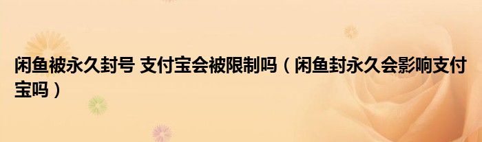 大家好,跳跳为你解答以上问题。闲鱼被永久封号 支付宝会被限制吗,闲鱼封永久会影响支付宝吗这个问题很多人还不知道,现在让我们一起来看看吧!